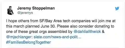 连硅谷大佬们都坐不住了,最近几天频频发声抗议,谴责这一让家庭分离的政策。这政策指的是川普任期内对非法移民采取的“零容忍”态度:美国边境执法者强制带走非法移民,这导致了部分非法移民跟子女分开。