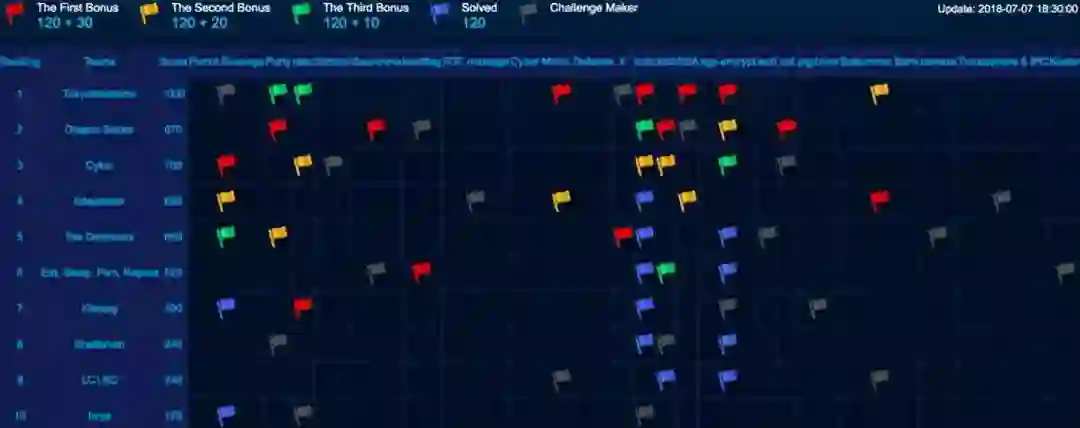 在赛后对 Dragon Sector 的采访中,宅客频道得知他们是在比赛结束后的10分钟,解出了一道“红旗”题,也就是那种可以直接加 150 分的题目,如果再多给他们 10 分钟,完全可以反超冠军 TokyoWesterns 。