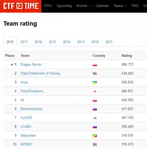 在最新的CTFTIME 排行榜中,Dragon Sector 名列榜首,看来“老大表示不服”~