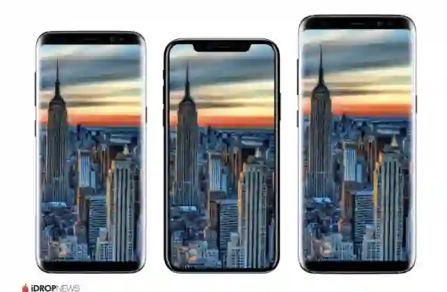 Galaxy S8(左)iPhone 8(中)Galaxy S8+(右)