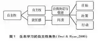 生本学习的设计者与实践者使用自主性这一概念时应该倍加小心。自主性与独立性并不是同义词,但两者的确都具有自我决定反映个体意愿的含义。自主性的含义不仅局限于独立自主行为,也适用于在处理外部期望、规则或压力时,唤醒行动意愿的行为(Ricoeur,1966;Reeve et al.,2002)。同样,自主权也不等于无视外部约束或外部要求(Dworkin,1988)。即使在依据外部要求开展行动时,只要认可或赞成行动价值,行为主体完全可能展现自主性(Ryan & Deci,2006)。