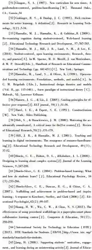 生本学习模式可以帮助学生在开放环境中自主创造学习机会,动态重构知识结构(Hannafin et al.,2014)。如“生本学习”名称所昭示,该方法通过树立学生学习主体意识,提高其学习投入度与责任感。实施生本学习,学生能够在完成外在目标过程中树立个人目标;能够以个人知识经验为基础,深入探索、选择并使用学习工具与资源;能够主动探寻未知的学习路径、掌控学习进度并开发个性化学习策略。无论是个人项目还是合作项目,学生都能相互交流、相互启发(Bransford et al.,2000;Brush & Saye,2000;Hannafin et al.,2014)。
