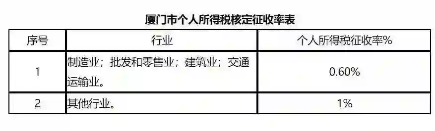 不过遗憾的是,这篇文章很快被和谐。娱乐资本论(ID:yulezibenlun)查询国税总局厦门税务局官网得知,确实有这么一个通知,落款时间为2018年12月28日,并附带有“厦门市个人所得税核定征收率表”。其中“制造业、批发和零售业、建筑业、交通运输业”,个税核定征收0.6%;其他行业个税核定征收1%,而影视行业属于其他行业。
