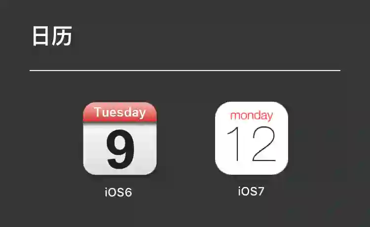 日历应用从 iPhone OS 就老老实实地显示着实时日期,设计也没有大幅度改变过。iOS 7 之后,不同地区的星期颜色显示会有不同,比如将地区设为日本时星期会显示黑色而不是红色,符合当地使用习惯。