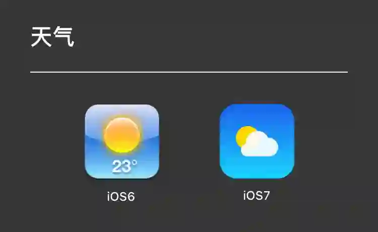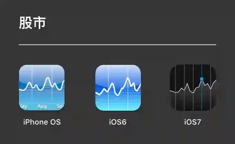 股市图标的曲线也被调整过,iOS 7 中则改为更加真实的黑色背景。