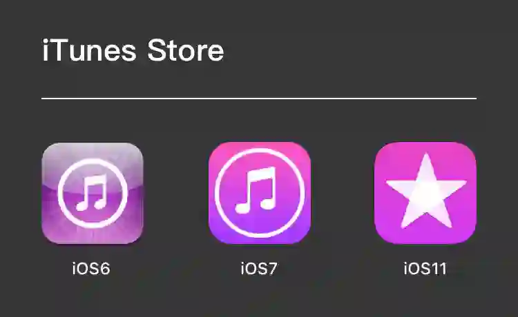iTunes Store 早在 2003 年就以 iTunes Music Store 登场,至今未和国区用户结缘。其作为苹果官方的音乐,电视,电影内容的商店图标一直以音乐符号出现。但在 iOS 11 中则变成了代表电影内容的星型,可能与订阅制的 Apple Music 的推出弱化了音乐商店的职能有关。
