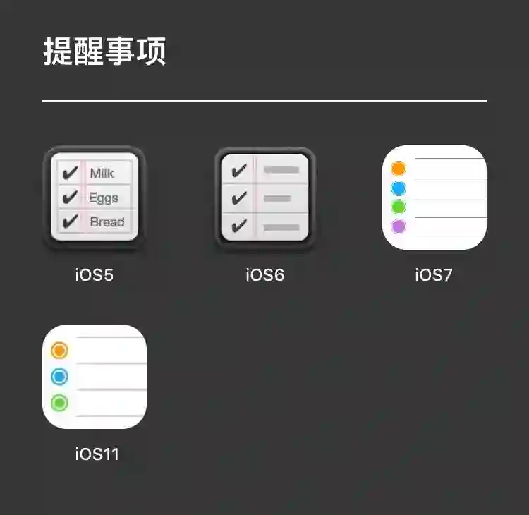 人慢慢变懒的过程大概如此。从 iOS 5 明显标注着「牛奶,鸡蛋,面包」,到不想写字,后来连横格也慢慢变少……
