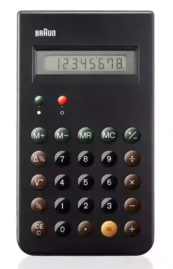 计算器图标几乎没有经历什么细节调整,都是巨大的调整。其第一代计算器的 UI 设计几乎照搬了迪特拉姆斯为博朗设计的计算器,迪特拉姆斯也是乔布斯的偶像之一。