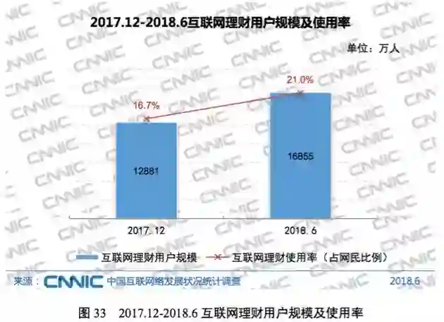 我国互联网理财使用率由2017年末的16.7%提升至2018年6月的21.0%,互联网理财用户增加3974万,半年增长率达30.9%。我国互联网理财用户规模持续扩大,网民理财习惯逐渐得到培养,资管业务打破刚性兑付有效降低金融机构业务风险,减少监管套利,同时进一步提升机构主动管理能力,推动互联网保本理财产品向净值型理财产品加速转化,货币基金发行放缓,促使互联网理财市场朝着合理规范化方向发展。