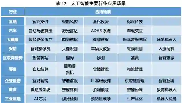 产业应用方面,人工智能技术的快速发展,对传统行业具有重塑性功能,并且通过改良 创新,为行业提供新的辅助性工具,促进行业进步,在金融、交通、健康、安全等诸多领域, 起到积极作用。