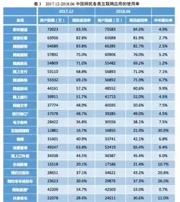 根据报告,截至2018年6月30日,我国网民规模达8.02亿,普及率为57.7%;手机网民规模达7.88亿,网民中使用手机上网人群的占比达 98.3%。