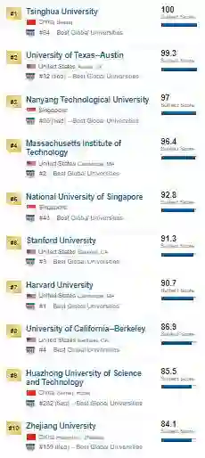 在这份排名中,清华大学计算机高居世界第一、UT Austin、南洋理工分别榜眼和探花。前十名之中,只有五所美国大学,而亚洲高校也占据了半壁江山。这一世界排名新格局,显然令美国学界不太适应。在公开声明中,CRA要求业界人士直接忽略这一“荒谬”的排名。