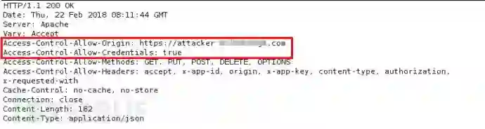 HTTP/1.0 200 OKAccess-Control-Allow-Origin: attackerrequester.comAccess-Control-Allow-Credentials: true