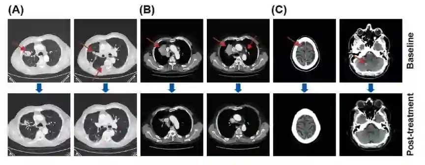 图:不同MET变异类型的晚期NSCLC患者接受capmatinib治疗后的影像学变化
