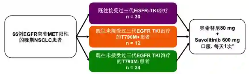 研究旨在评估Savolitinib联合奥希替尼方案用于EGFR突变MET阳性NSCLC患者的安全性和初步疗效。入组≥18岁的局部晚期或转移性EGFR突变NSCLC患者,既往接受过≥1线的EGFR TKI治疗,WHO PS评分0-1分。MET阳性定义为FISH法检测MET基因拷贝数≥5或MET/CEP7比值≥2。MET过表达(IHC法,3+细胞≥50%)或NGS检测阳性的患者也可以入组。