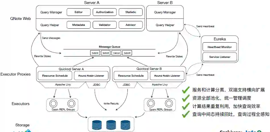 此外,双端都会注册至 Eureka,由 Eureka 对多实例进行心跳检测。该架构基本解决了之前遇到的问题,达成服务与计算分离,查询全并行,资源充分利用等目的。