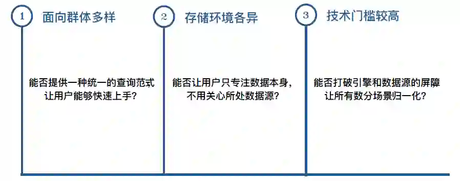 因此,我们考虑对外提供统一的查询范式,屏蔽底层数据源和操作细节,让业务人员摆脱加工数据的技术束缚,不论是对成本控制还是效率提升都是一本万利的事情。