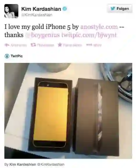 在这些名人尤其是卡戴珊拿着金色iPhone 5频频在社交媒体以及电视广播中亮相后,金色就成为了iPhone最受欢迎的颜色,很多人都在追问哪里可以购买到这样的一部金色iPhone。
