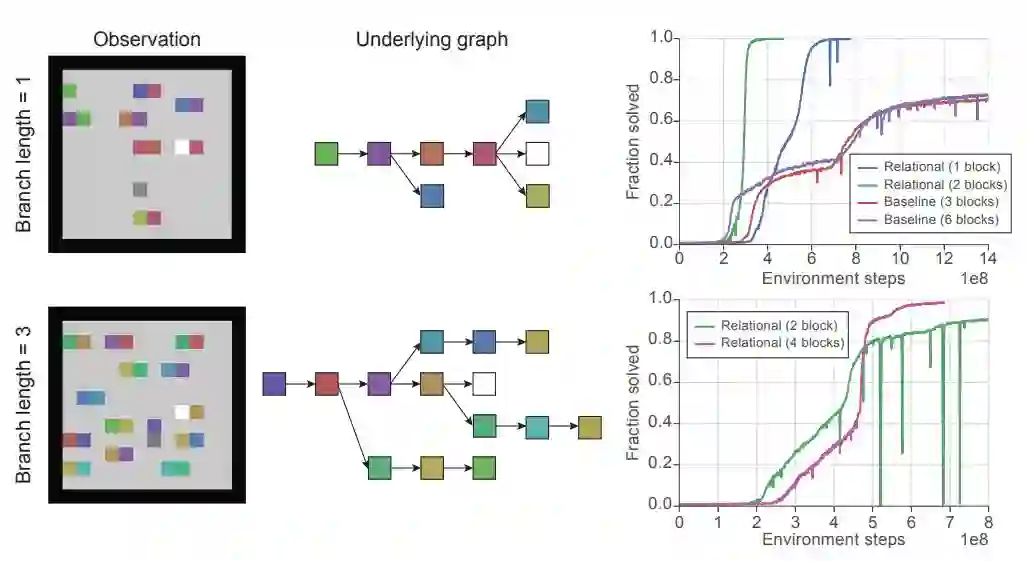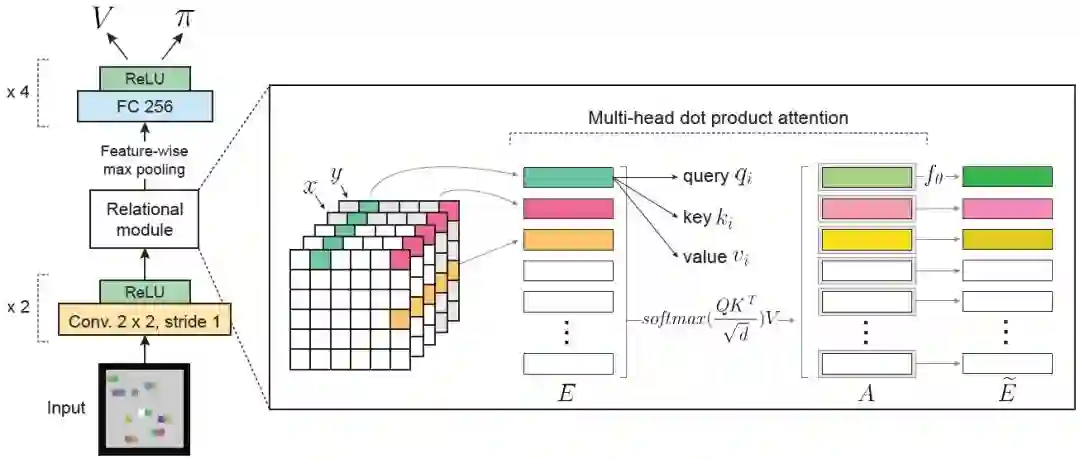 在这里,我们通过利用 20 多年前 RL 文献中的见解在关系 RL(RRL,[ 8,9 ))下来改进深度 RL 体系结构。RRL 主张使用关系状态(和动作)空间和策略表征,将关系学习(或归纳逻辑编程)的泛化能力与强化学习相结合。我们提出了一种将这些优势和深度学习所提供的学习能力相结合的方法。这种方法提倡学习和重复使用的以实体和关系为中心的函数 [10、11、12] 来隐含地推理 [13] 的关系表征。