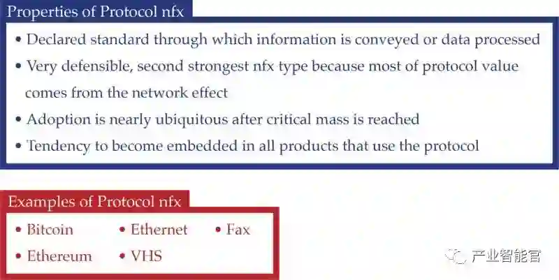 当一种通信或者计算标准公布后,所有节点创建者均可利用该协议接入该网络,这时候就产生了协议网络效应。比特币和以太坊就是协议网络的近期例子。协议制定者可以是一家公司,一批公司,或者一个小组。