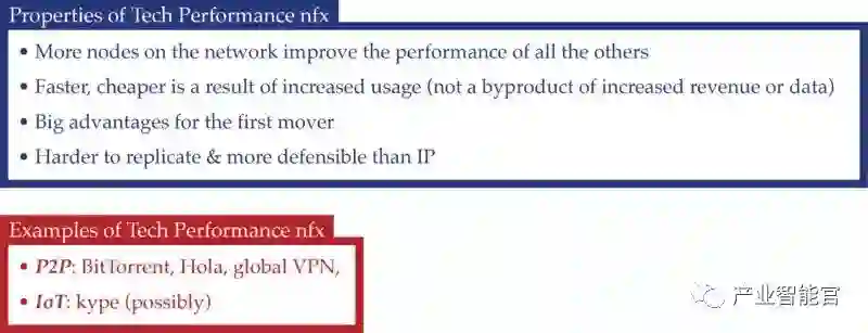 技术性能网络效应不同于技术进步,我们可以认为前者更加出色。技术进步有很短的半衰期而且防御性不再很强了。如果你是第一个想出某技术的,创新的节奏保证不会让你的优势持续多久,因为竞争对手要么会抄袭你的技术,要么也会自己开发出来。但如果你具备技术性能优势的话,你的产品就会因为成为率先起跑的人而赢得一条runaway的优势。之后你就不必不断战斗才能保持领先了。你的领先往往会随着时间转移而强化而不是弱化。