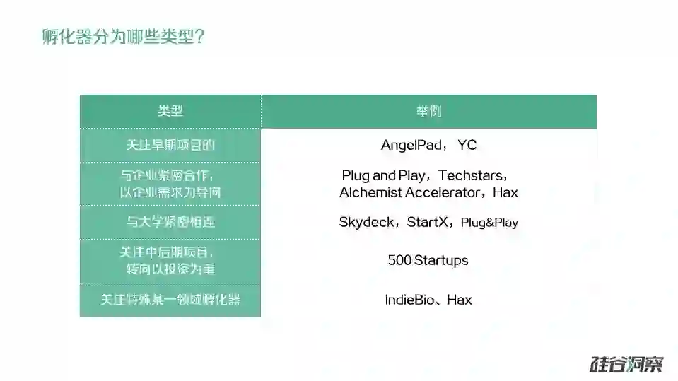 除了大公司、创投机构与高校,硅谷还有一批各类型的全球顶尖孵化器,连接着顶尖大学、投资人、创业者和企业;在充满活力的硅谷创新生态中,意义非凡。