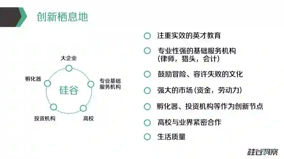 那么,硅谷蓬勃的创新力的背后是什么?李攀在分享中对硅谷的创新要素一一道来。