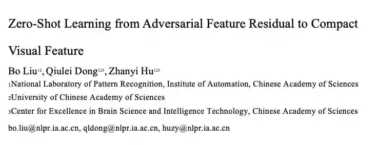 本文对中科院自动化所胡占义团队完成,被AAAI-20录用的论文《Zero-Shot Learning from Adversarial FeatureResidual to Compact Visual Feature》进行解读。