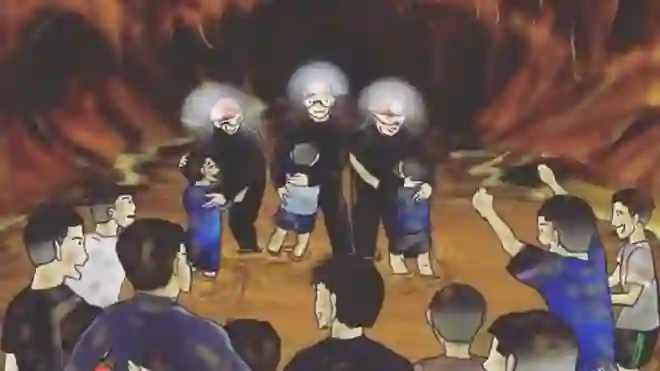 4个男孩的身影陆续出现在洞口