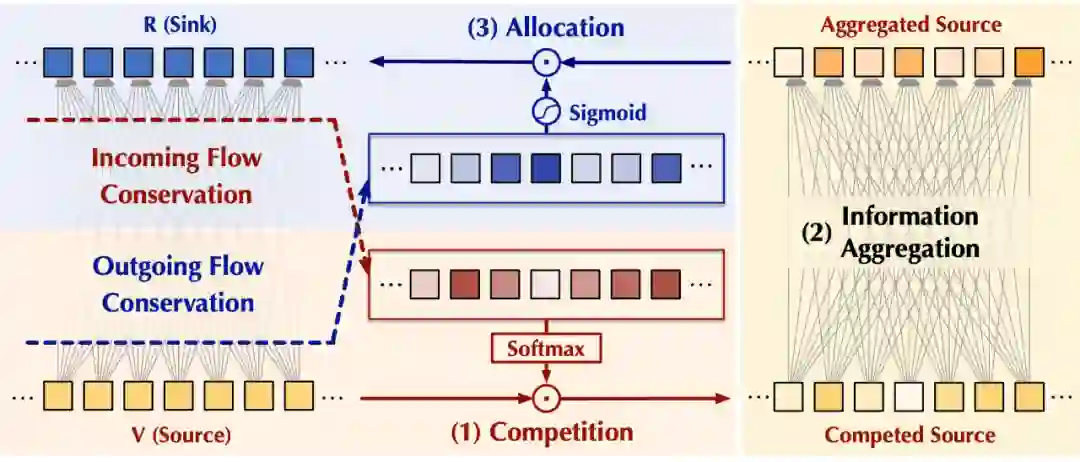 我们关注到在图论中的经典网络流(Flow network)模型中,「守恒」(Conservation)是一个重要现象,即每个节点的流入量等于流出量。受到「固定资源情况下,必定引起竞争」的启发,在本文中,我们试图从网络流视角重新分析经典注意力机制中的信息流动,并通过守恒性质将竞争引入注意力机制设计,以避免平凡注意力问题。