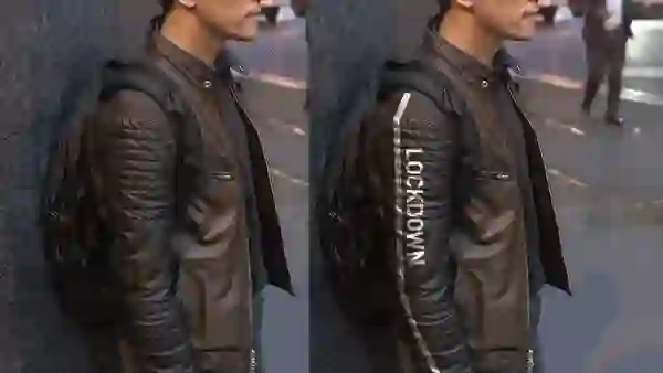 随着“3,2,1”的倒计时,衣服突然出现了色泽鲜明、纹理复杂的动态投影,依旧是任你拉扯,我如影随形。