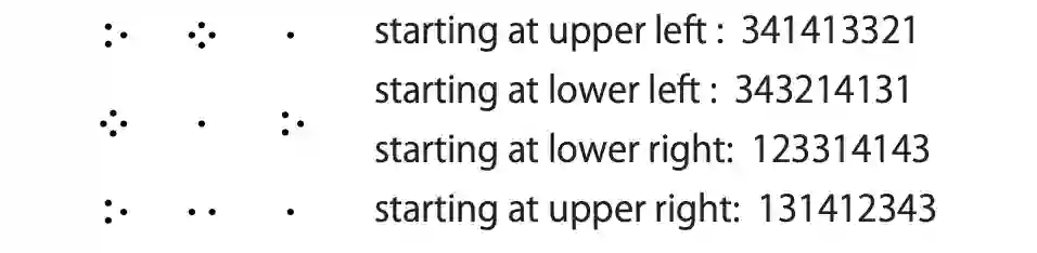 点的数量是随机且排他分布的。识别是从p x p点簇(识别窗口)的四个角开始的。
