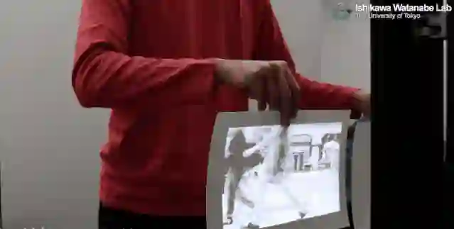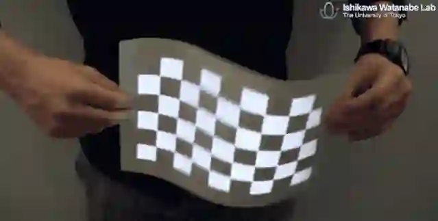 图像投影到一张纸上,无论让它怎么晃动,图像都会随着纸的变形同步发生变化。