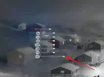 比如我把控制点放在紫色小房子上,右移“SC”滑块,只有紫色小房子周围恢复了彩色。当然现在这个控制点还不够精确,旁边的房子和雪地也恢复了彩色。