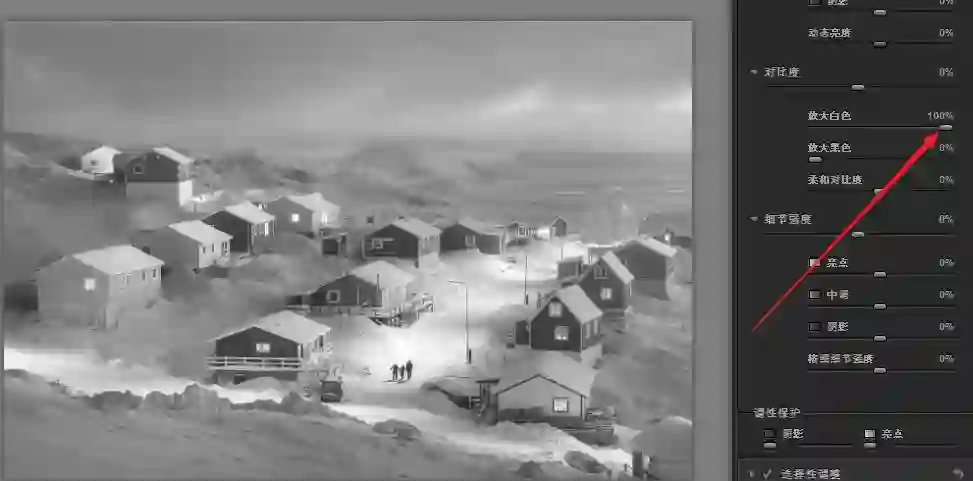接下来的”放大白色“和”放大黑色“两个分滑块,有非常智能的提亮和压暗照片的作用。