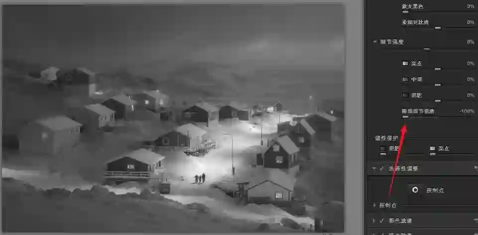同理左移”精细细节强度“滑块,画面中只有小的纹理被削弱了,但较大的边缘和细节仍然很好保持。