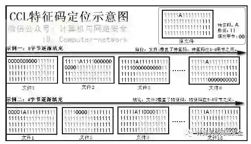 但是这个特征码的范围是不是有些大呢?其实在真正操作的时候,如果我们想得到比较小的特征码范围,可以将CCL一次填充“00”的字节数减少,例如由默认的16字节减少到4字节。为了便于您的理解,做了一张比较形象的CCL特征码定位示意图,如图10所示。通过这张图可以更加透彻地理解CCL特征码定位原理了。