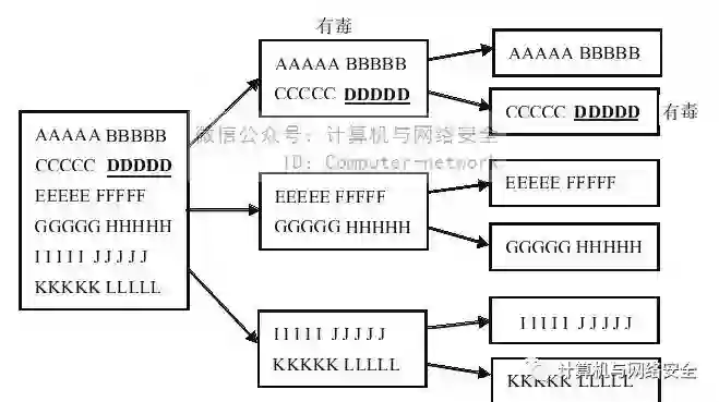 图1 用分割法发现特征码的过程