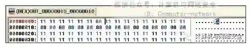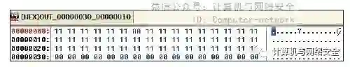 当我们用CCL定位特征码时,它会从区段头部开始填充“00”数据,因为“00”往往都表示“此处为空”,所以如果将某一段数据替换为“00”,也就相当于删除了这段数据。为了让演示效果更加明显,这里将整个文件作为一个区段来定位。现在来看看CCL生成的第一个无后缀文件OUT_00000000_00000010,如图6所示。不难发现,第一行已经被无意义的“00”给填充了,我们假设的特征码"AA"现在已经不存在了,很显然这个文件是不会被反病毒软件查杀的。