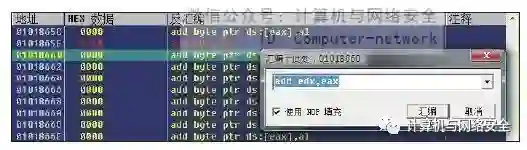 加1减1法所利用的就是十六进制值相近的部分汇编指令,其所代表的意思往往也大体相同,例如十六进制的0x74、0x75分别代表汇编指令中的JE与JNE,虽然它们所代表的含义相反,但都是具有跳转功能的指令。