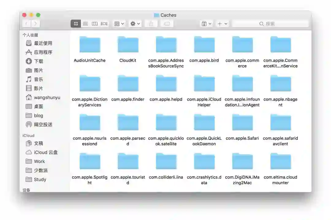 此外,许多 App 的缓存垃圾等都会存放于特定目录中。比较常见的,如 /Users/用户名/Library/Caches 和 /Users/用户名/Library/Application Support 等。你可以进入文件夹中按需清理。但请务必注意:仅在你完全了解文件夹作用后,才能考虑是否删除,否则可能造成 App 崩溃乃至系统关键功能受损等严重后果。