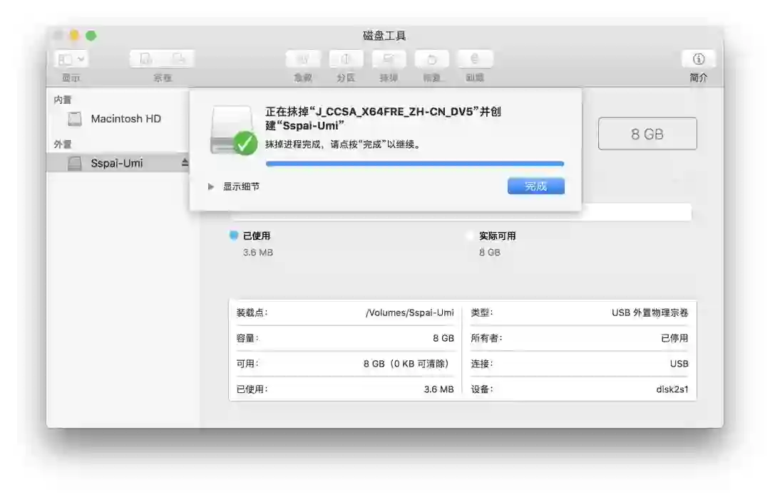 接着,你需要插入用于备份的移动硬盘,如果它是 NTFS 格式的话,还需要首先在磁盘工具中抹掉为 EXFAT 等 macOS 支持的格式。