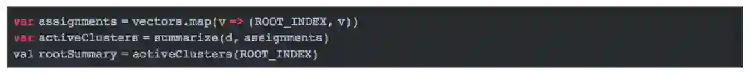 在上述代码中,第一行给每个向量加上一个索引,用以标明簇在最终生成的树上的深度,ROOT_INDEX的值为1。summarize方法计算误差平方和,我们来看看它的实现。