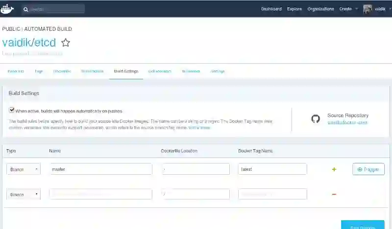 Automated Builds 的工作原理是我们必须在 Docker Hub 上配置它以指定 Docker 上下文的路径(即 Dockerfile 的路径),从该 Dockerfile 构建镜像并打上自己的标记。这意味着从仓库构建的每个镜像,必须在唯一路径上存在 Dockerfile。这很快就会成为一个问题。
