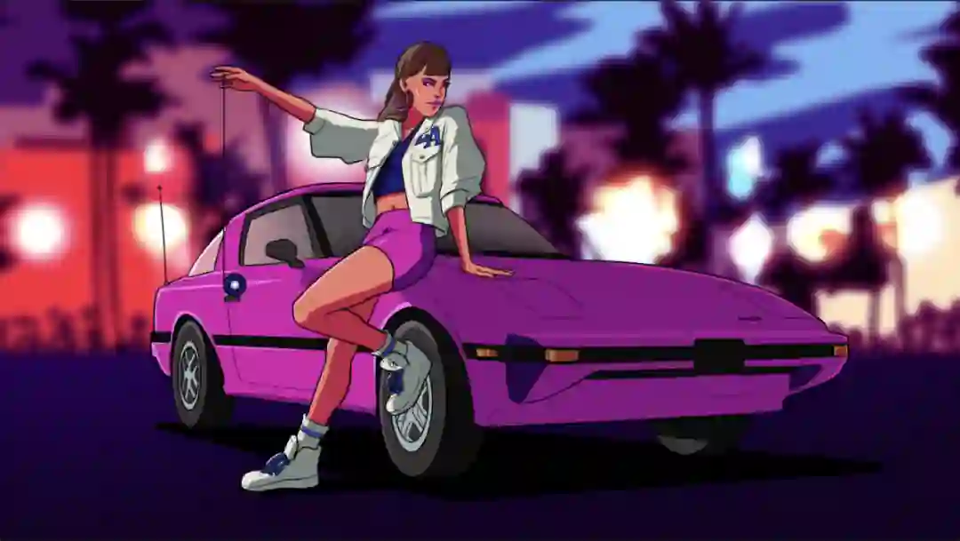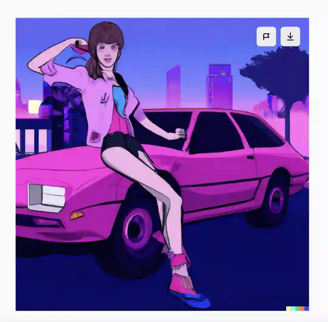 谈到艺术形式,Dall-E是如何处理纯 "艺术绘画 "的?我试图用Dall-E重现我做过一幅插图,没有啥专业要求,只是自娱自乐。因为这样就没有那么多动机去 "精确"(因为不需要专业的)。只是想看看Dall-E是否比专业故事板更适合于艺术。下图是我自己设计的图片(我是Vaporwave和lofi美学的超级粉丝,在Instagram平台上绘制了很多那种80年代的图片,还把它们做成了动画):