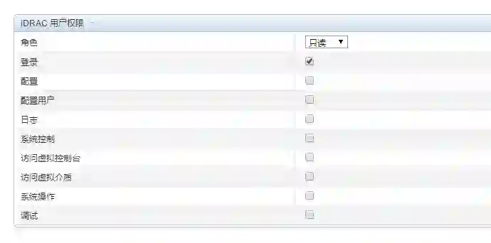 然后在最下面配置iDRAC用户权限,需要给予的权限勾选上就可以了,然后点击“应用”,用户就创建完成了。