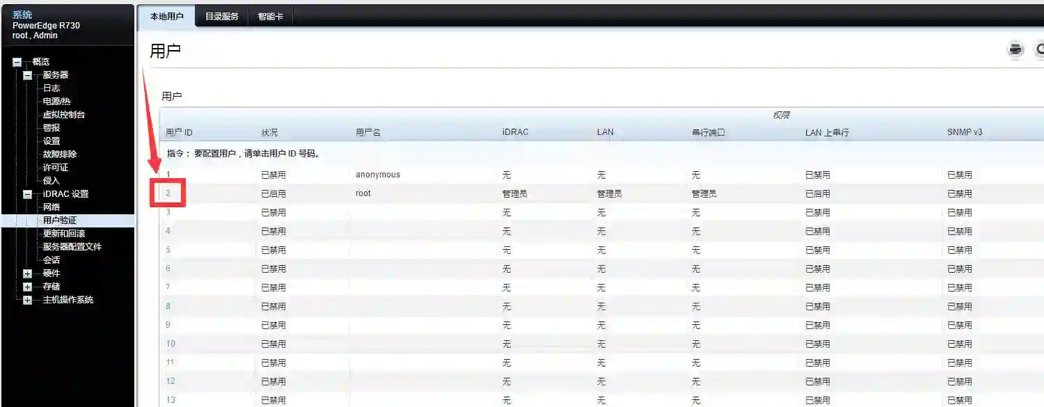 在界面左侧,点击“iDRAC设置”--“用户验证”,到达下图所示的界面