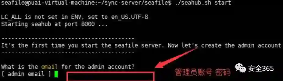 设置完 管理员邮箱用户 密码后 seafile 安装完成.