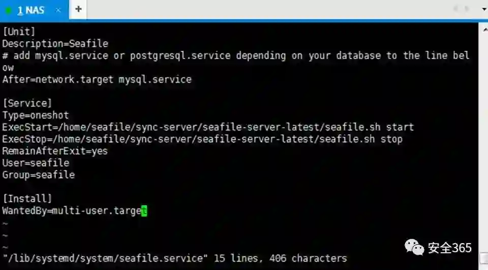创建并编辑seafile.service文件(这里吃了官方文档的亏,官方给的不是/lib/这个位置) vi/lib/systemd/system/seafile.service
