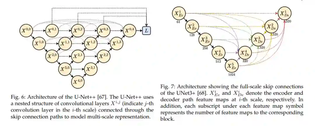 图2 提出的U-Net分类法根据其基本设计思想对U-Net模型的不同扩展进行分类。更具体地说,我们的分类法考虑了U-Net模型的模块化设计,并显示了改进发生的地方(例如,跳跃式连接)。